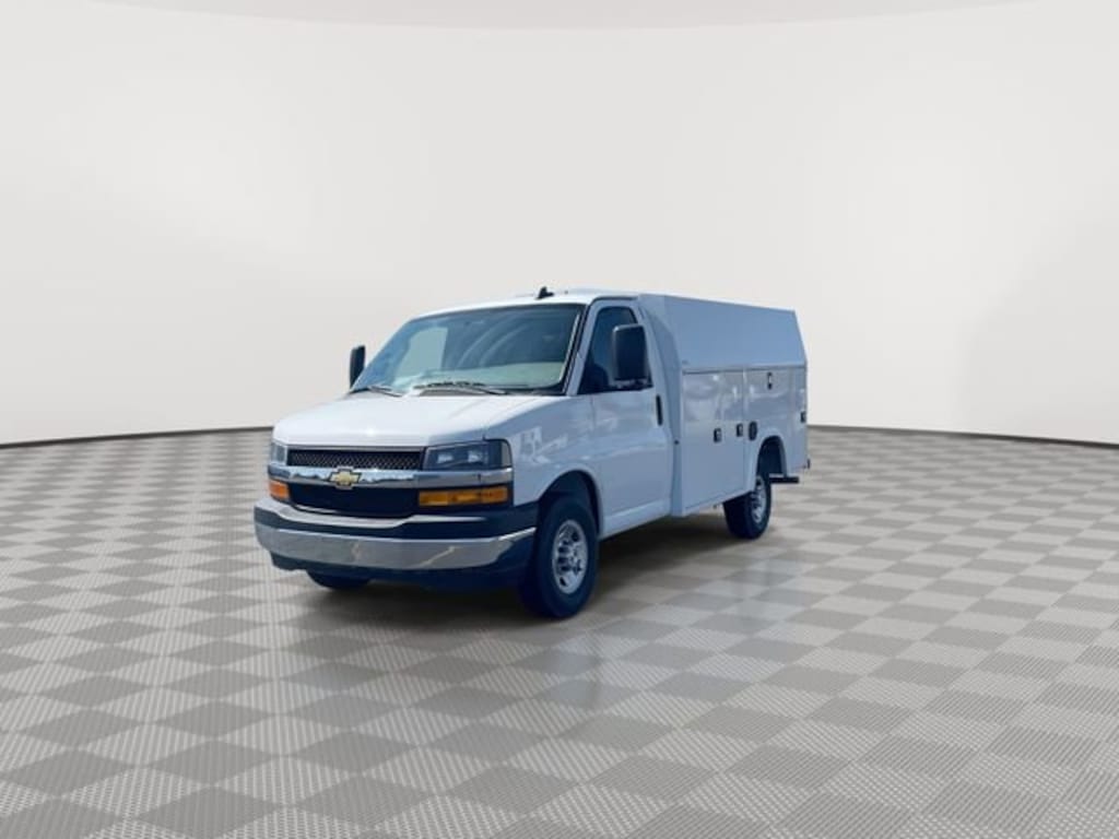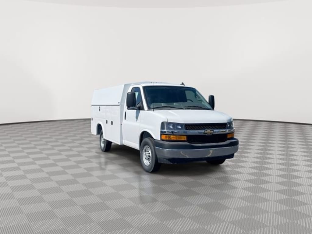 Summit White 2025 Chevrolet Express 3500 Knapheide KUV Express Body.